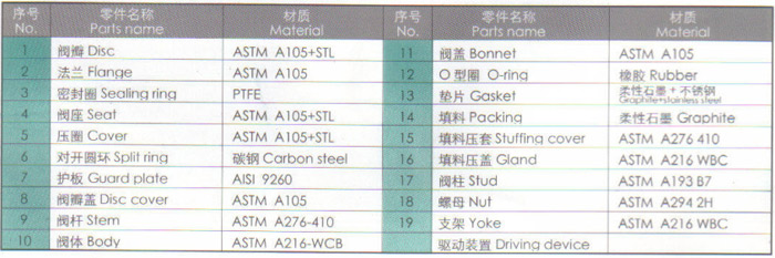 主要零件材質(zhì)表